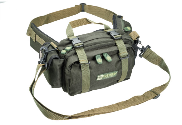 Praktická přívlačová taška s možností připnutí okolo pasu pomocí integrovaného polstrovaného pásu nebo nošení přes rameno. Je vybavena řadou praktických kapes na krabičky s nástrahami i drobným příslušenstvím.