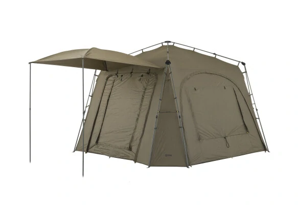 - K přístřešku Base Camp lze pomocí Bivvy Connection Kitu připojit jakýkoliv bivak nebo brolly na trhu
